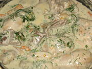 ziemniaki, sosik pieczarkowy z piersią z kurczaka, surówka z pora, marchewki i jabłka...