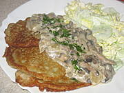 placki ziemniaczane z sosem pieczarkowo-paprykowym na pikantnie