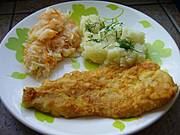 Dzisiaj smażony filet z mintaja, tłuczone ziemniaczki z koprem i surówka z młodej kiszonej kapusty, do picia sok pomarańczowy:)