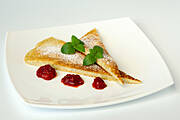 A cukierniczo jablecznik zabajony z bitą śmietana i serem białym...polecam delkates na talerzyku