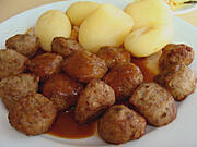 Dzisiaj ziemniaki, pulpety w sosie pomidorowym i buraczki zasmażane.