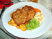 Środa: Kotlety z piersi, ziemniaki, surówka z sałaty lodowej, papryki, pomidorów i ogórka.