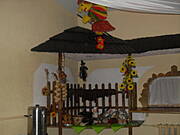 tu masz moje przykładowe aranżacje "wizualne:)"-sama robiłam-w końcu jestem florystką:) zdjęcia jeszcze przed....zanim poustawialiśmy wszystko...Nie mogę znależć zdjęć "po"... ale jak pamiętam,to były tam: ogórki kiszone,małosolne i konserwowe,smalec tradycyjny i z jabłkiem,pieczona duża szynka na zimno,kilka rodzajów swojskiej kiełbasy,pieczony tłusty boczek,ćwikła,chrzan,kilka rodzajów chleba,bigos staropolski w termosie jak kamionkowy antałek,grzybki marynowane i jeszcze kilka rzeczy...jak sobie przypomnę-dam Ci znać:)