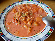 zupa pomidorowa ze świeżych pomidorów z makaronem oraz bób gotowany