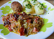 Wczorajszy kapuśniak ze słodkiej kapusty i kopyta z sosem pieczarkowym:)
