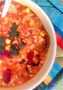 Zupa pomidorowa z ryżem a na drugie leczo z papryki i cukini:)