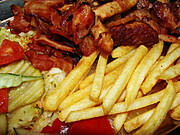Wczoraj rosół z makaronem, na drugie szaszłyki, karczek, kaszanka i kiełbaski z grilla, sałatka z pomidorow ze szczypiorkiem w smietanie.