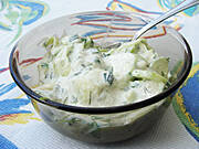 Mizeria z sosem czosnkowym ziemniaczki i gulasz wieprzowy