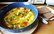 sobota: zalewajka z kiełbaską i boczkiem wędzonym