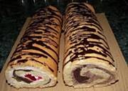 . Wiem, wiem, ja i pieczenie to niespotykana rzecz, ale cóż...dziwny jest ten świat, to i ja mogę podziwaczyć ;-). Nazbierałam w górach górę malin i popełniwszy nalewkę oraz zamroziwszy dwa pojemniki, zostało mi jeszcze tyle, że musiałam do nich upiec biszkopt ;-) Do rzucania o podłogę jeszcze nie dorosłam, ale dało się go nawet przekroić na dwie części, więc dorobiłam krem, nawaliłam malin do każdej warstwy i dla picu zalałam galaretką. Mam nadzieję, że da się zjeść :) Ale o to już niech się rodzinka martwi, ja zrobiłam swoje i oczekuję być za to baaardzo kochana