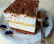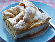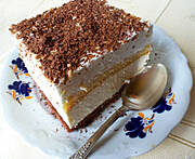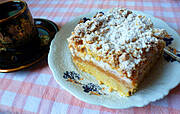 A cukierniczo jablecznik zabajony z bitą śmietana i serem białym...polecam delkates na talerzyku