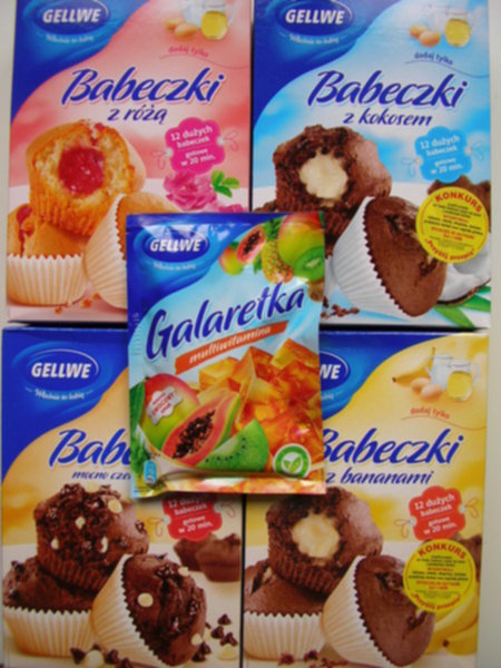 Do mie dzisiaj też dotarła paczka: cztery, różnego rodzaju babeczki i galaretka. Dziękuję