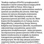 Po cichu, bez rozgłosu,bez udziału mediów -- 8 listopada 2012 roku koalicja rządząca PO i PSL przegłosowały w sejmie ustawę dopuszczając tym samym żywność modyfikowaną GMO w Polsce!