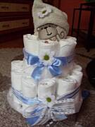 tort z pampersów 28 sztuk + rożek kąpielowy i myjka (to beżowe z małpką :) - wsadzone w środku, z myjki zrobiona jest czapeczka)