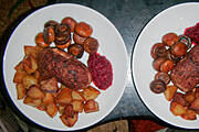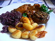 Pieczona szynka,kluski śląskie z sosem pieczarkowym,buraczki zasmażane ;)