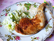 Kurczak pieczony z 40 ząbkami czosnku (Alicji64) z ryżem i surówką z kapusty pekińskiej, ogórków małosolnych i rzodkiewek. Na deser- babka cytrynowa.
