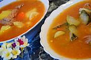 Leczo warzywne (mój a'la gulasz ciut zmodyfikowany, bo bez fasolki szparagowej), rosół z makaronem dla córy.