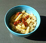 U mnie bedzie makaron pełnoziarnisty z sosem z zołądków indyczych (chyba pomidorowym)