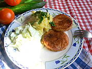 Krupnik z ziemniakami, na drugie szaszłyki (ktorych ostatnio pozazdroscilam ;), ziemniaki http://wielkiezarcie.com/recipe26549.html i letnia sałatka w sosie czosnkowym.