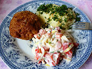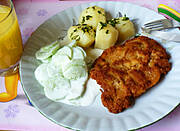 U mnie schabowe w formie bitek z sosem, ziemniaki i sałata lodowa ze śmietaną.