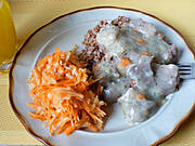 w formie potrawki z dodatkiem kukurydzy i ogórka kiszonego (wg eNki) + pieczywo ...