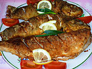 Ryba smażona,ryba duszona w warzywach z pomidorkami,ziemniaki,ryż z przyprawami,surówka z kiszonej kapusty.