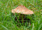 Czy wie ktoś może, jak się nazywa to kaniopodobne cuś? Ładnie wygląda, nie zjadamy, nie niszczymy, tylko ciekawość nas zżera po kawałeczku, bo w atlasie grzybów pożyczonym z biblioteki ich nie ma :}