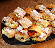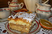 A cukierniczo jablecznik zabajony z bitą śmietana i serem białym...polecam delkates na talerzyku