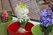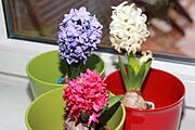 Ooo....Słoneczko się pojawiło..... Trzeba skończyć zagrabianie trawiszcza, by nie leżało jak zaczną się opady....:) Dzisiaj kawka dla chętnych z ekspresu, Hiacynty coraz większy kwiatostan mają.....