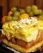A cukierniczo jablecznik zabajony z bitą śmietana i serem białym...polecam delkates na talerzyku