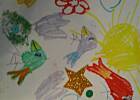 Będę wpadać,jak tylko sie da.Teraz,ku rozweseleniu,załączam zdjęcie ''arcydzieła'' mojej wnusi.Prezent dla babci,gdy byłam w szpitalu.Gdyby ktoś się nie domyślał,te stworki to podobno ptaszki.