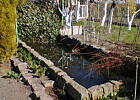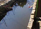 szumi delikatnie woda w stawie i małe rybki pływają.
