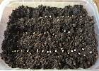cukinia zaczyna kiełkować w torfowych miniforemkach - podnosi czapeczki ziemi, kiełki są jeszcze bladziutkie i małe ![]()
