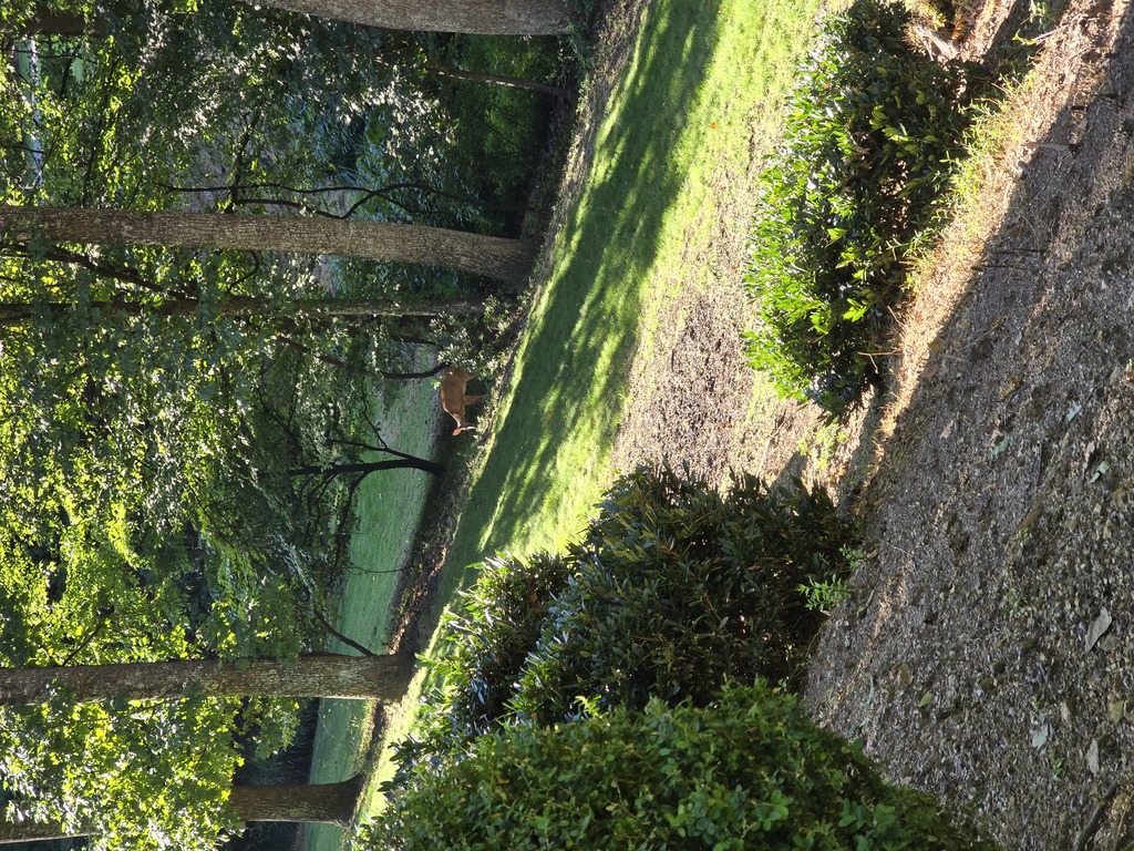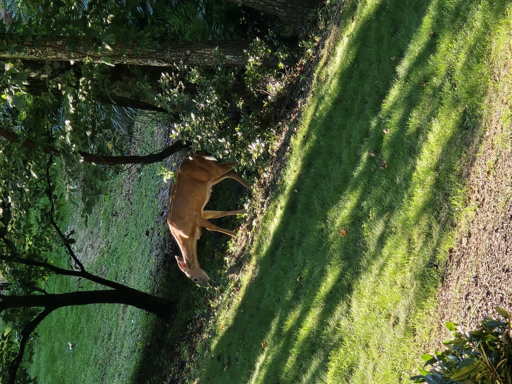 Jelenie sobie łażą blisko domu. Dzięcioły stukają w drzewa.