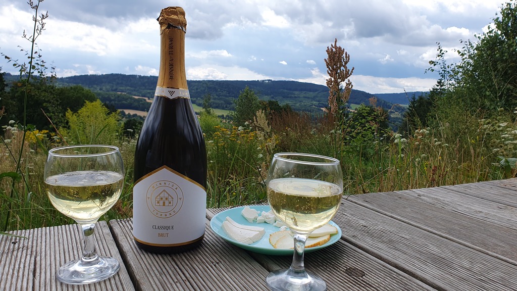 Z tego powodu spowolniło wszystko. Zjedliśmy owsiankę z borówkami na tarasie i tak się cieszyliśmy słońcem, że nagle wpadłam na pomysł. I tu uwaga, bo zupełnie od czapy - oznajmiłam, że dochodzi dwunasta więc czas napić się szampana , którego dostaliśmy w prezencie. Szampan jest z winnicy Turnau czyli w moich rejonów. Ciekawość mnie zżerała, bo wiem, że mają super wina, ale szampan, to nowość. Połówek najpierw się wzbraniał, bo to jakiś dziwny pomysł, jak na nas, ale ja się uparłam . No i otworzyliśmy. Ale pyszny. Ja nie lubię szampanów, ale ten jest najlepszy, jaki miałam okazję próbować.