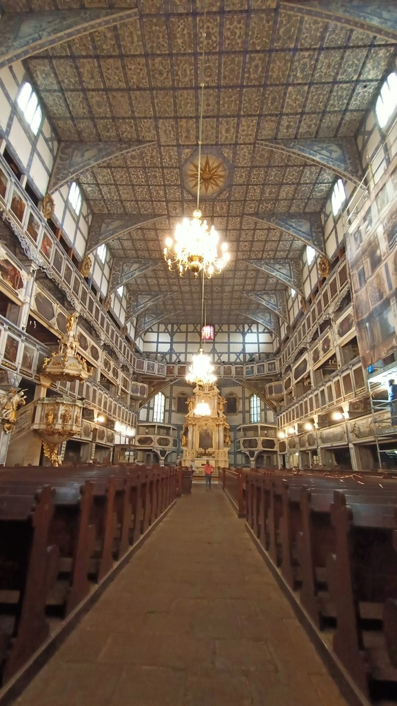 Wczoraj padało, ale wsiedliśmy w auto i pojechaliśmy do Jawora. Malutkie miasto albo raczej miasteczko. Cisza, czysto i wszystko w miarę zadbane. Pozostały stare kamienice do remontu, ale pewnie brak funduszy więc wystawione na sprzedaż. Zwiedziliśmy Kościół Pokoju, który został wpisany na listę UNESCO w 2001 roku. Perfekcyjna szachulcowa konstrukcja oraz wspaniałe wykończenie wnętrza polichromiami. Wszystko w drewnie i co nas zakończyło mieści się w nim 6 tyś ludzi. Urocze miejsce.