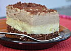 To ciasto to kombinacja przepisów z WŻ. Ciemny biszkopt zrobiłam z przepisu na porzeczkowiec http://www.wielkiezarcie.com/recipe62076.html. Blat bezowy upiekłam z artykułu WKN http://www.wielkiezarcie.com/article69405.html. Na górę ciasta ubiłam 200ml (1 kubek) śmietany 30% z dwoma łyżkami kawy cappuccino. Można dodać żelatynę (1 łyżeczkę) do bitej śmietany rozpuszczonej w 1/3 szklance ciepłego mleka. Biszkopt przekroiłam na pół. Pierwszą część posmarowałam masą kawową, na to blat bezowy, potem drugą część biszkoptu i na to bitą śmietanę.