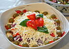 Sałatką szopską zajadałam się w Bułgarii, jej podstawą jest odpowiedni słony biały ser i czarne oliwki, które w Bułgarii smakują zupełnie inaczej niz u nas. Ja użyłam zielonych, a podobny w smaku ser kupiłam w Lidlu.Polecam, jest pyszna