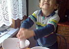 Robię go już 2 rok z rzędu z pomocą Małego pomocnika :) buzia bródna od podpijania przecieru a to z maszynki a to z miski :)