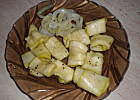 tak warzywa wymieszać z solą,a zalewę zagotować i zalać gorącą,tylko oleju nie gotować,razem z zalewą.