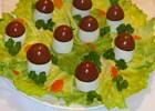Ja też zrobiłam te grzybki, tylko bez nadzienia same jajka, kapelusze ciełam od tej węższej strony, bo na tej grubszej były takie wgniecenia i te kapelusze by nie wyglądały tak jak powinny, gdyby za nóżkę grzybka dać całe jajko, a za kapelusz dodać 1/2 jajka, byłyby większe.