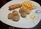 Kluski,a raczej kluseczki zrobione i wszystkim bardzo smakowały.Tutaj w duecie z mini roladką i surówką.