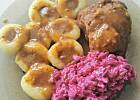 Zrobiłam na dzisiejszy obiad z łopatki. Wyszło pysznie, sos się zagęścił dzięki obtoczeniu w mące mięsa i nie trzeba było dodatkowo podbijać. Super smaczek daje dodatek ogórków. Podałam z ziemniakami tłuczonymi i surówką z kapusty kiszonej.