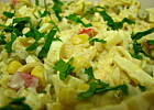 Zrobiłam tąsałatkę. Tylko bez kiełbaski a za to z ogórkiem. Bardzo lubię sałatki z zupkami chińskimi.