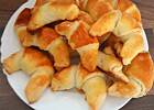 Zrobiłam pół godziny temu te rogaliki dodając od siebie troszeńkę drożdży. Środek wypełniłam jagodami wymieszanymi z czubatą łyżką budyniu wiśniowego z cukrem. A wierzch posmarowałam rozbełtanym jajkiem. Pychota.