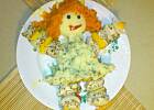Z przygotowanych składników uformować Anię: marchewka-włosy, ziemniak zmienić w twarz, robiąc oczy z ziela angielskiego, a usta z marchewki. Zmiażdżony ziemniak to będzie sukienka, a szaszłyki - ręce i nogi :)