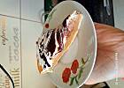 Szarlotka pyszniasta . Zrezygnowałam z cukru w musie, bo jabłka były wybitnie słodkie i podziękowałam ''śnieżce'' i polewie czekoladowej na rzecz czystej śmietanki i wiórek gorzkiej czekolady . Szarlotka nie straciła ze swojej atrakcyjności smug