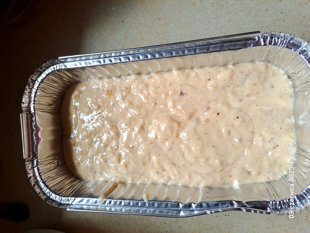 -w jednej misce pognieść widelcem banany, dodać jaja i jogurt-dokładnie wymieszać