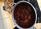 Kolor piękny /zasługa fajnych buraczków/, smak niezły, cebula już tak nie przeszkadza, ale jej ostrość została /trzeba ostrożnie doprawiać pieprzem/. Bulionem zalałam, gorącej wody dolałam by uzupełnić do pełnego gara /ciut, ciut/.
