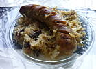 na wierzch dajemy kiełbasę. Posypujemy po wierzchu delikatnie majerankiem